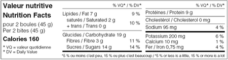 Depuis les changements apportés à l'étiquetage alimentaire, on a voulu simplifier la tâche du consommateur pour que celui-ci puisse rapidement repérer les sucres présents dans un produit. Ce faisant, on doit maintenant regrouper entre parenthèses, suite au mot Sucres, tous les sucres utilisés pour composer le produit, en ordre décroissant de poids. Dans cette catégorie, on retrouve dorénavant la purée de fruits, soit la purée de dattes séchées qui compose majoritairement mon nouveau produit.